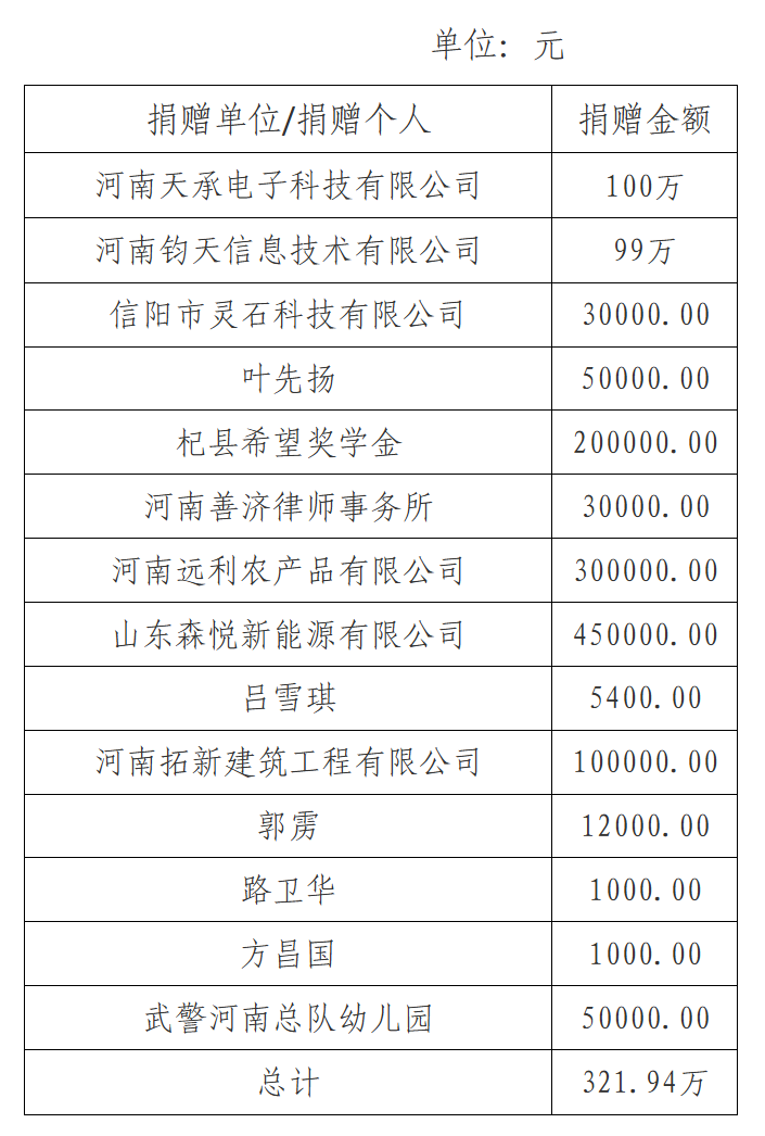 信阳师范大学教育发展基金会2024年捐赠芳名录